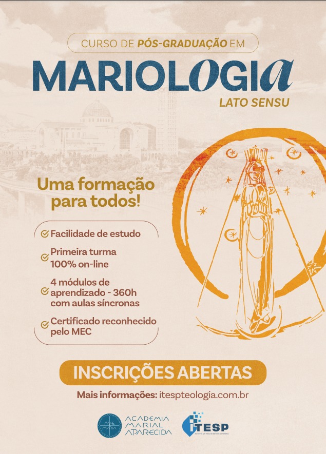 Uma grande, e aguardada, novidade foi anunciada pela Academia Marial de Aparecida, estão abertas as inscrições para o curso de Pós-Graduação em Mariologia. Este novo projeto conta com a parceria com o Instituto São Paulo de Estudos Superiores (ITESP), responsável pela coordenação e estruturação pedagógica do curso, além da emissão do certificado, reconhecido pelo MEC.