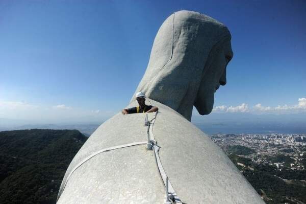 Depois de danos causados durante duas tempestades, a estátua do Cristo Redentor, no Rio de Janeiro, ganhou pequenos reparos e maior proteção contra raios.