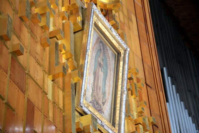 Ao mostrá-las ao arcebispo, deixando-as cair no chão, apareceu no manto a figura da imagem atual de Nossa Senhora de Guadalupe. A impressão dessa imagem num tecido tão transparente e tosco como um filó, em cores que não se deterioram e com outros detalhes inexplicáveis, desafia até hoje a ciência.