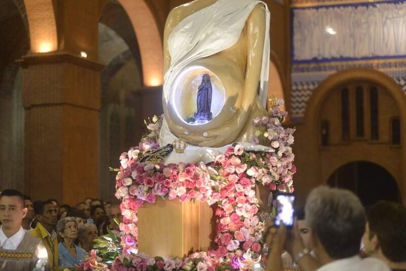 Chegamos ao final da semana, ainda em tempo Novena a Nossa Senhora Aparecida, e o nosso coração bate forte em sincera gratidão a Deus por tantas graças que temos recebido. Desde o dia 03 estamos aqui, todas as noites louvando, agradecendo e pedindo a intercessão de nossa querida Mãezinha. O tema rezado e refletido hoje, “Maria: Mãe acolhedora dos filhos na eternidade”, nos apresenta aquilo que foi constante na vida de Maria; a capacidade de acolher com serenidade de coração e confiança absoluta o Plano de Amor do Pai para a humanidade; Jesus Cristo. Maria nos ensina o que acabamos de rezar cantando: “ETERNIDADE é, na verdade, o amor vivendo sempre em nós.” Acolheu a Jesus, acolheu a saudação cheia de profecia dos lábios de Isabel, acolheu as palavras perturbadoras de Simeão e Ana, acolheu a aflição do casal de Caná... acolhidas cheias de fé, repletas de gratidão... A palavra que mais temos dito e ouvido nestes dias é “GRATIDÃO”. Eu agradeço... Eu quero agradecer... Eu tenho muito a agradecer... Gratidão! Um coração agradecido torna-se merecedor de novos benefícios, novos favores e novas graças. Isto tem sido possível pela atitude humilde, cheia de confiança e acolhedora de Maria que conduz nosso coração ao Seu Filho, nosso Salvador Jesus. N’Ele se encontra toda graça e redenção, nossa realização, nossa eternidade feliz. Vamos continuar rezando, agradecendo, louvando e pedindo. Amém