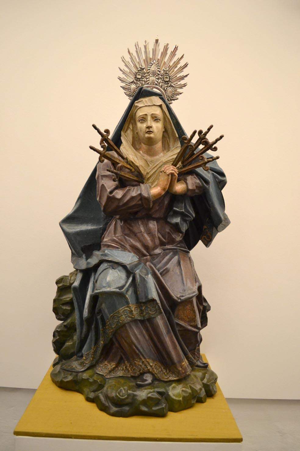 Antônio Francisco Lisboa (1730-1814), o Aleijadinho, adequando as tradições religiosas mineiras, confeccionou diversas imagens de Nossa Senhora das Dores, com sete espadas postiças, encravadas no peito, para facilitar o ritual e a visualização dos fiéis. Pois, a cada dia e a cada “Dor” meditada, era retirada uma das espadas até completar as sete, durante aquela semana. Assim, se configurava a coparticipação de Maria na Redenção desde a “Profecia de Semeão” até colocar o corpo de Jesus “no túmulo” (Nossa Senhora a Soledade). Esta é a catequese, anunciada – celebrada – ritualizada, que tinha por intuito levar aos participantes fiéis a se interessar pela Semana Santa.