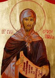 Santo Efrém (306-373), diácono, foi poeta e grande compositor de hinos. Dizia: “Semelhante a teu Pai, semelhante a tua Mãe, a quem és tu semelhante? Deus não tem forma nem cor; és semelhante a teu Pai em força, essência, em natureza, em poder; mas és também semelhante a tua Mãe, que te gerou, e de quem tomaste a forma humana; semelhante a teu Pai, semelhante a tua Mãe, és semelhante a ti próprio, ó tu, que tomaste a forma de escravo”.