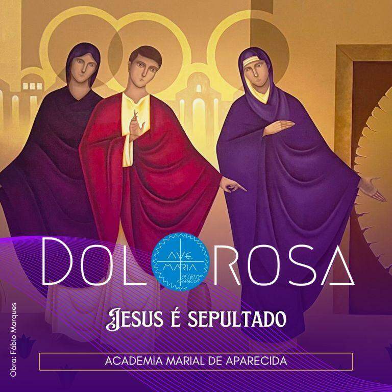 Junto à sepultura de Jesus, assim como junto à cruz, está Maria. Barônio faz uma referência marcante desta presença ao dizer que mesmo “não sendo a divina vontade, acompanhou resignada o sacrossanto corpo de Jesus ao sepulcro, no qual também depositaram os cravos e a coroa de espinho”². Chegado o derradeiro momento de fechar o túmulo, os discípulos voltam-se para Maria e diz: “Eia, Senhora, vai ser fechado o túmulo. Ânimo! contemplai vosso Filho pela última vez e dai-lhe um derradeiro adeus!”³