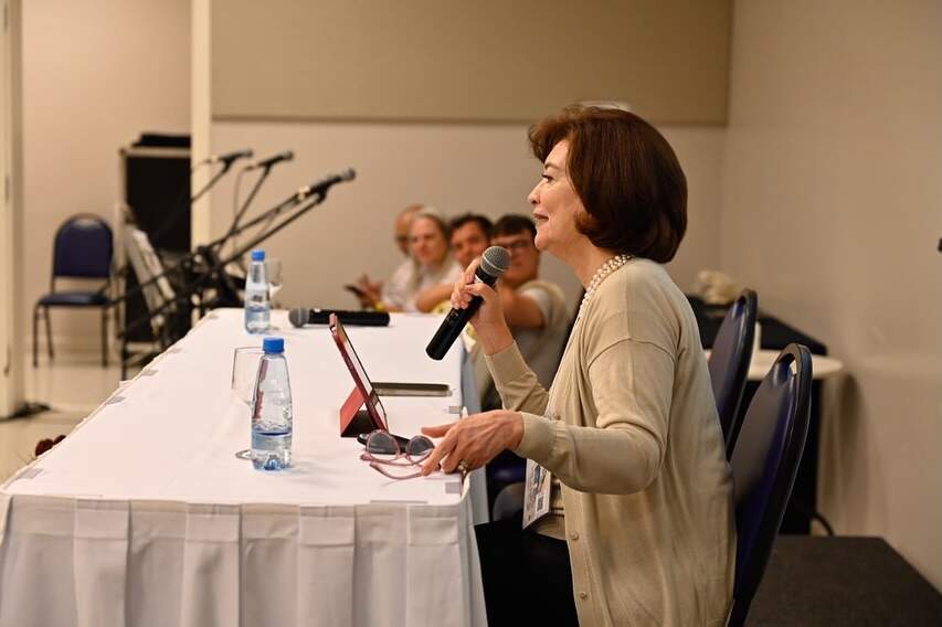 A primeira palestra desta edição foi conduzida pela Profª Wilma Tommaso, que, na manhã da quinta-feira (30), propôs a reflexão sobre o tema: “Homem e mulher, criados na glória, perceberam que estavam nus”, a partir dos mosaicos da Fachada Leste do Santuário Nacional. O momento foi marcado por uma partilha bíblica sob a perspectiva da arte sacra, apresentando a antropologia cristã e a criação em vista da redenção.