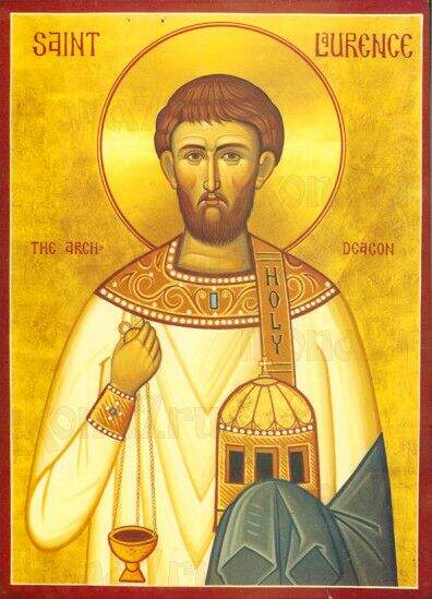 “São Lourenço — Diácono e Mártir — Festa — famoso diácono da Igreja de Roma, confirmou com o martírio sob Valeriano (258) seu serviço de caridade, quatro dias após a decapitação do Papa Sisto II. Segundo tradição divulgada já no século IV, suportou intrepidamente atroz martírio na grelha, depois de distribuir os bens da comunidade aos pobres, por ele qualificados como verdadeiros tesouros da Igreja. Foi sepultado no Campo Verano na Via Tiburtina, onde Constantino edificou a basílica que tem o seu nome. Sua memória a 10 de agosto é atestada pelo ‘Depositio Martyrum’ (354). Seu nome é lembrado no Cânon Romano”.