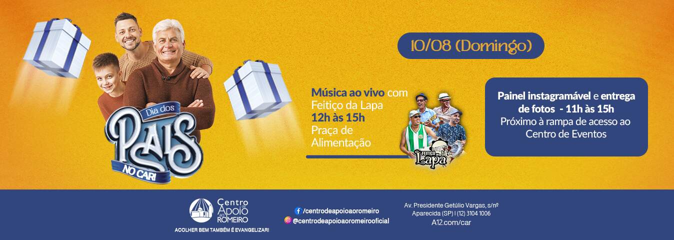 Em celebração ao Dia dos Pais, o Centro de Apoio ao Romeiro preparou uma programação especial para os visitantes no próximo domingo, 10 de agosto. A iniciativa tem como objetivo proporcionar um momento de confraternização familiar e acolhida aos romeiros e peregrinos que passam pelo Santuário Nacional.