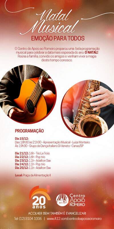A programação musical acontece na Praça de Alimentação II do Centro de Apoio ao Romeiro.