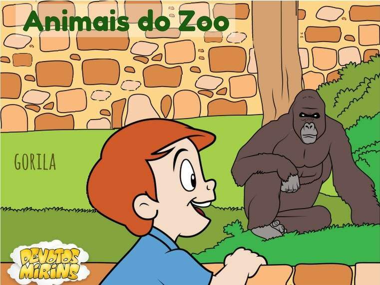 Na Revista Devotos Mirins de julho vimos alguns animais nos quadrinhos: anta, arara, elefante, girafa, gorila, leão, macaco-prego e orangotango.