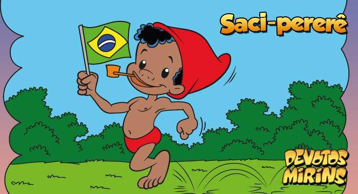 O saci-pererê é um menino negro que tem apenas uma perna, usa um gorro vermelho e adora aprontar travessuras.