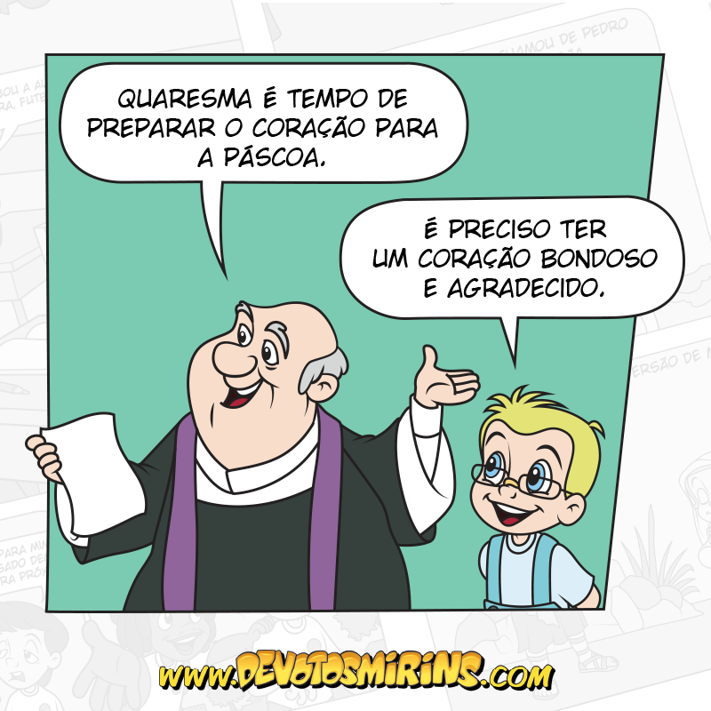 Como a Quaresma é o tempo de preparação para a Páscoa, tempo de perdão e reconciliação, vamos pensar de modo especial em nossa vida, e retirando do nosso coração tudo o que nos afasta de Deus, para que na Páscoa possamos estar preparados para uma vida nova!