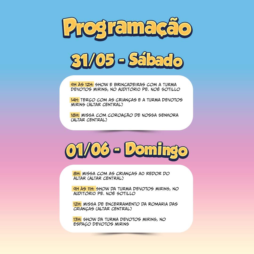 Reúna a sua família e participe da 4ª Romaria Nacional das Crianças, nós esperamos por você!