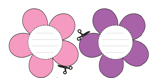Utilize a tesoura para recortar as flores que estão desenhadas na página. Escreva uma mensagem linda para a mamãe. Dobre as pétalas, de modo que ao colocar no prato elas fiquem viradas para cima. Convide a mamãe para coloca-las no prato com água e ver elas abrindo!