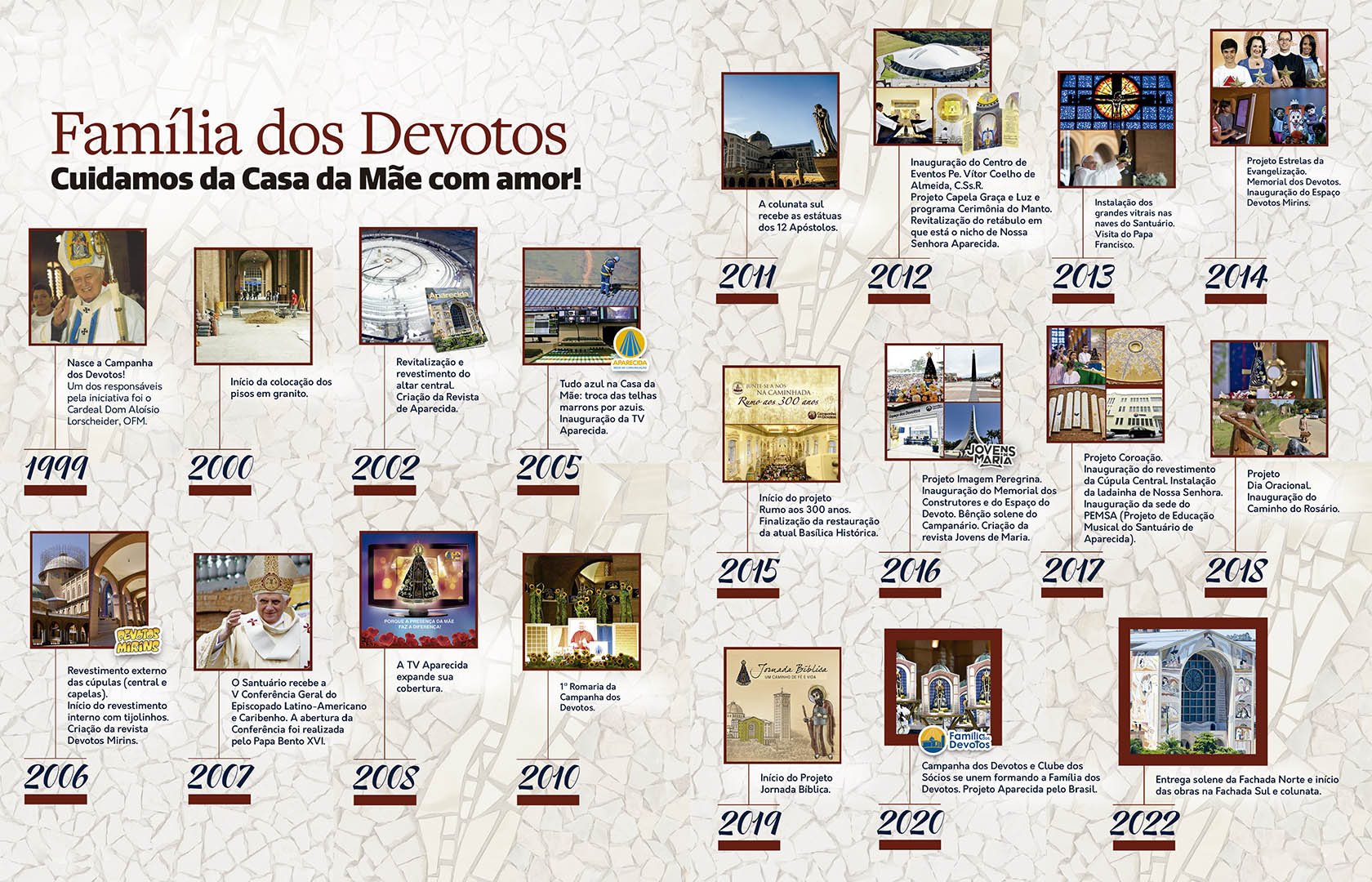 Hoje, formamos uma única família: a FAMÍLIA DOS DEVOTOS, responsável por sustentar os projetos evangelizadores que compreendem o Santuário Nacional, Rádio/TV Aparecida e Portal A12.