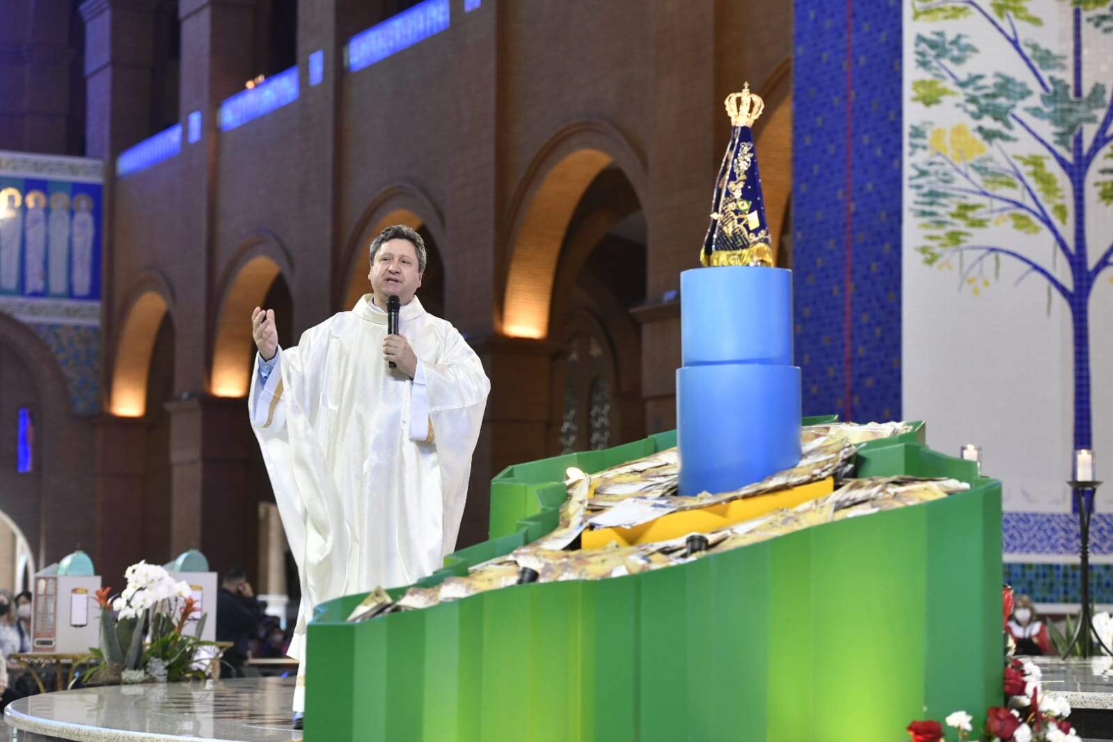A Missa Aparecida pelo Brasil, celebrada nesta sexta-feira (12), às 9h, foi presidida pelo reitor da Casa da Mãe Aparecida, Padre Eduardo Catalfo. A celebração marcou o envio missionário de seis representantes da Família dos Devotos com as capelinhas de Nossa Senhora Aparecida e trouxe ao altar da Basílica as cartas para a Mãe Aparecida, que foram escritas e enviadas pelos devotos ao longo do mês de outubro. Cada prece, agradecimento e pedido reunido nesta ocasião simbolizavam os desejos e a esperança do povo brasileiro.