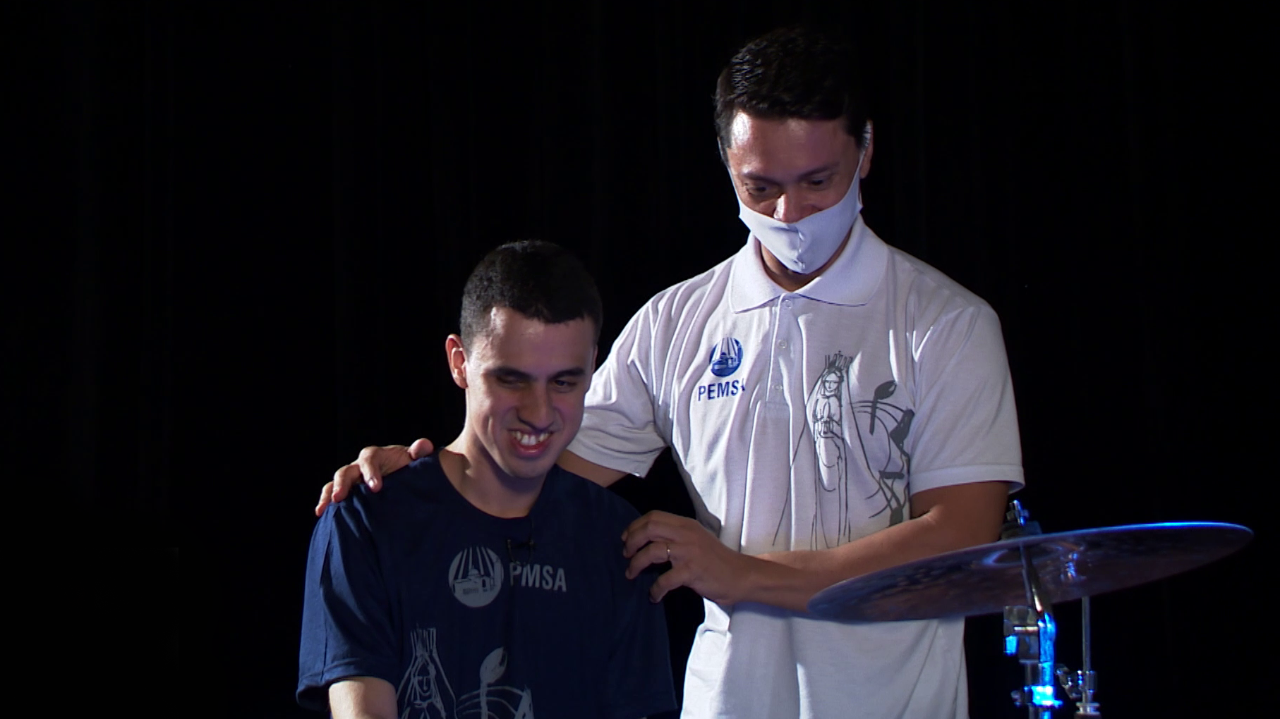 Maurício José Gonçalves é deficiente visual desde seu nascimento e há cerca de nove anos perdeu totalmente a visão. No entanto, é baterista no Projeto de Educação Musical do Santuário de Aparecida (PEMSA), uma das obras sociais assistidas pela Família dos Devotos. “O fato dele ser deficiente visual não impede ele de fazer nada, porque ele tem um ouvido espetacular” afirma o instrutor do PEMSA César Dias.