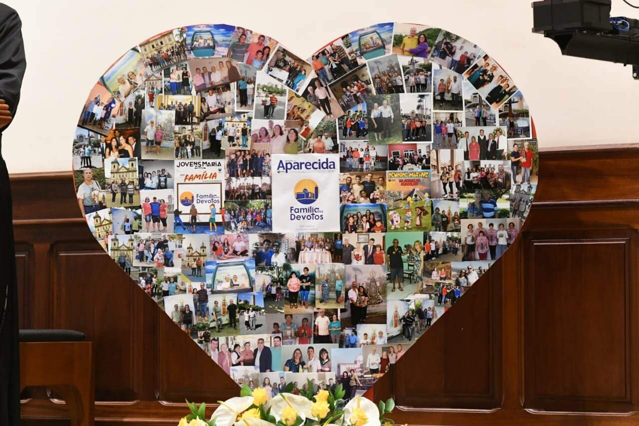 Diante do altar da Mãe Aparecida foram colocadas fotos de fiéis que fazem parte da Família dos Devotos, representando tantas famílias, homens e mulheres de Deus.