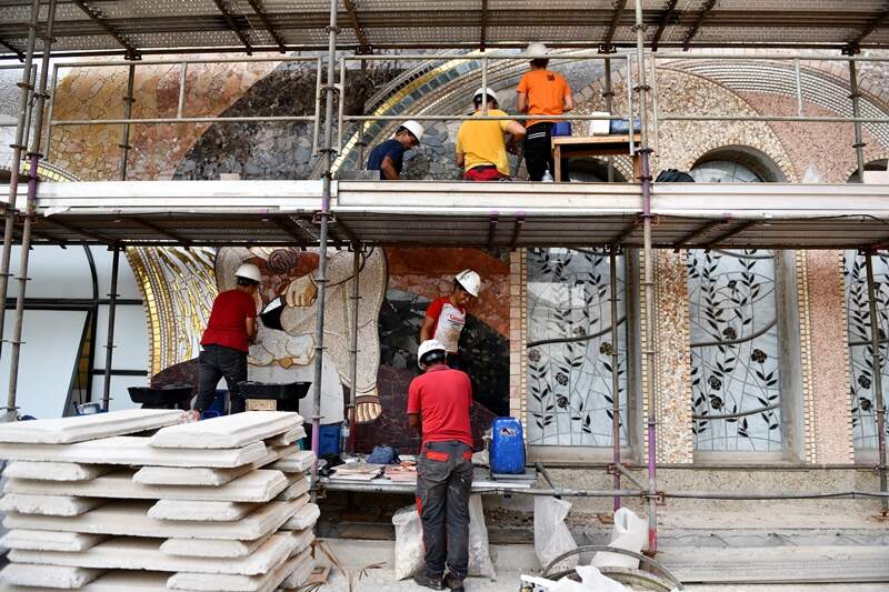 Em 2022 nos dedicamos à construção da infraestrutura para instalação dos equipamentos de ventilação e ar-condicionado, bem como na aplicação dos mosaicos na parte posterior da Fachada Sul. Em 2023, aconteceu a segunda fase, com a reconstrução da Colunata e aplicação dos mosaicos na parte inferior da fachada e nas galerias que ficam atrás da Tribuna Bento XVI.