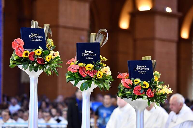 Mas... você sabe que todos os membros participantes da Família dos Devotos (os adultos, os Jovens de Maria e os Devotos Mirins) têm seus nomes registrados no Livro dos Devotos, que fica abaixo do Altar Central. Em todas as missas rezamos pelas intenções deles. Você não se lembrava disso? Não tem seus familiares participando?