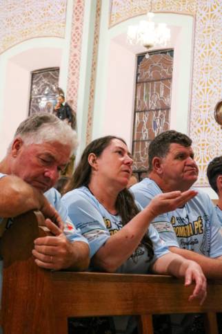 “Hoje, essa imagem parte com eles, eles a devolverá (sic) com o agradecimento de toda nossa Paróquia (...) No dia primeiro (de maio), se Deus quiser, estarei lá em Aparecida, vou caminhar com eles também, da entrada da igreja até o Altar Central”, disse o pároco durante a celebração.