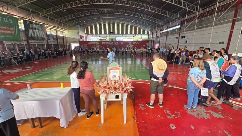 Após a Missa de envio, o grupo e moradores da cidade se reuniram na Igreja de Nossa Senhora Aparecida antes de iniciar a caminhada definitiva