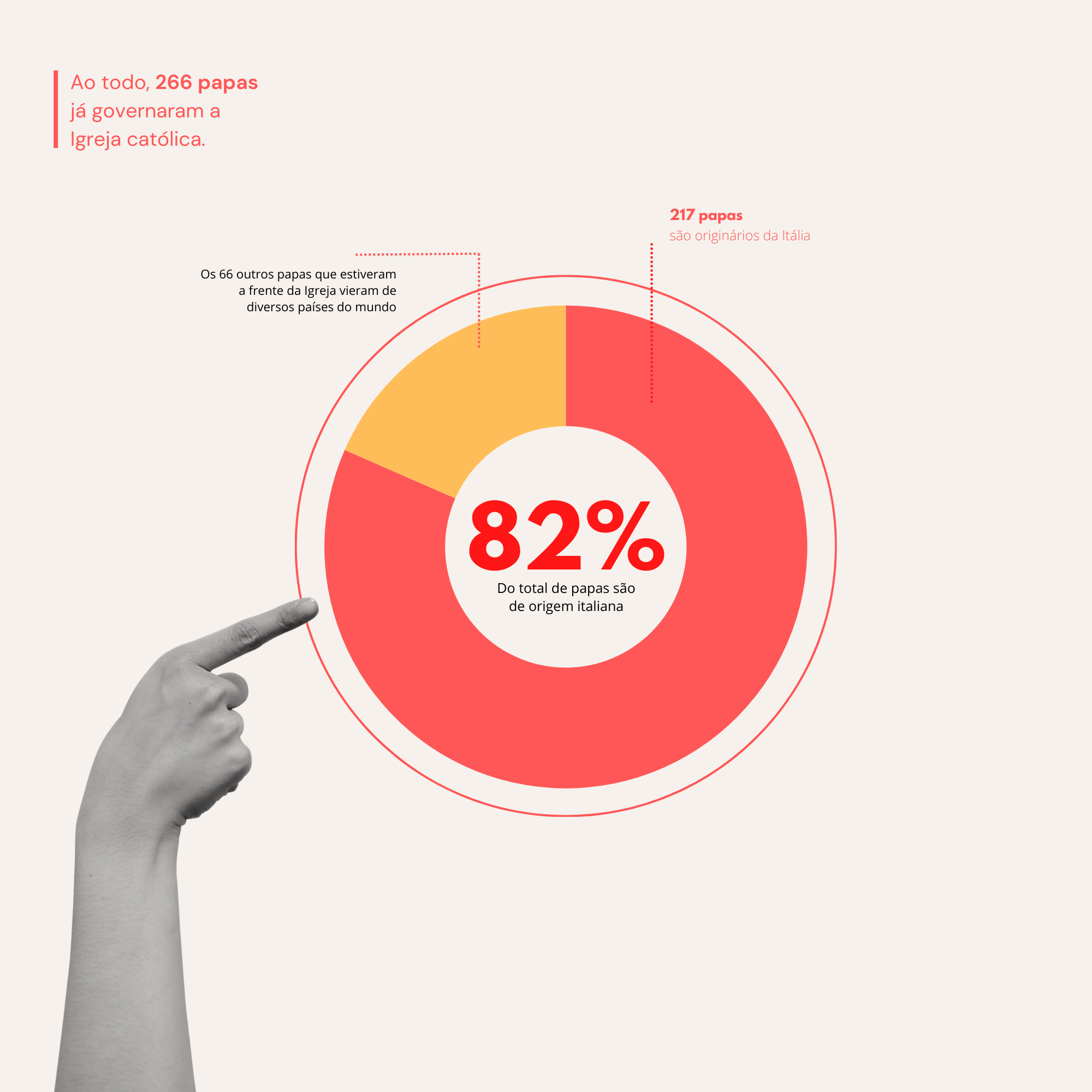 O país com o maior número de papas é a Itália. Dos 266 eleitos na história, 217 são italianos, cerca de 82% do total.