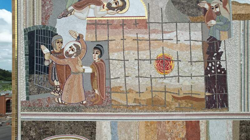 A libertação de Pedro exigiu-lhe também ações que nos lembram a libertação do povo de Israel da escravidão do Egito que contemplamos na Fachada Norte.