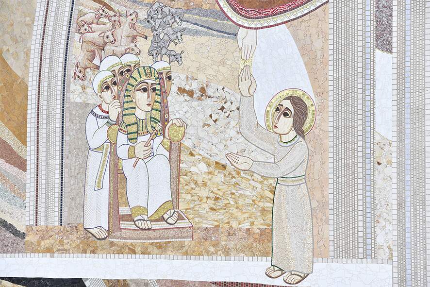 Amigos da Revista de Aparecida, continuamos nosso estudo sobre a Fachada Norte do Santuário Nacional. Neste mês, apresentamos duas cenas: José explica os sonhos do Faraó (Gn 41,1-36) e José administrador dos bens do Egito (Gn 41,38-57).