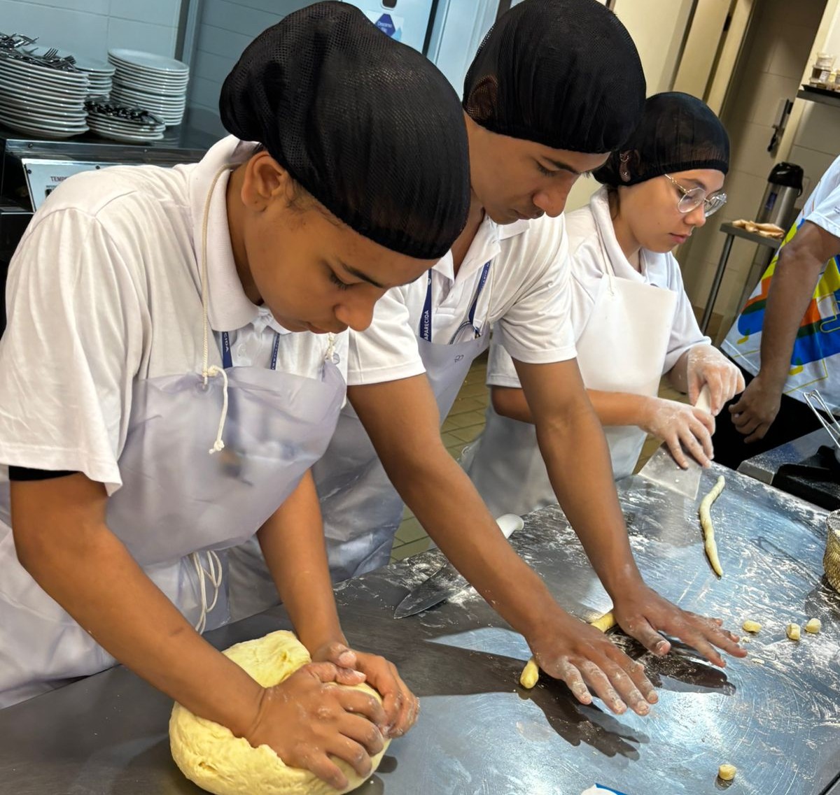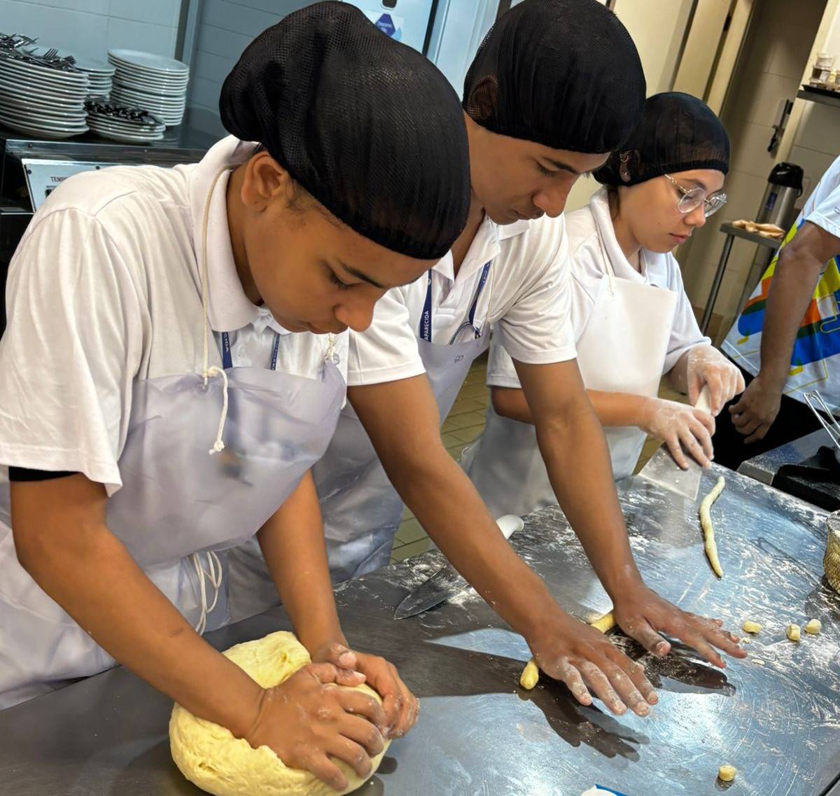 Assim também acontece entre os alunos do projeto social Mãos na Massa, mantido pelo Santuário Nacional, graças à ajuda da Família dos Devotos. Ao produzirem em suas oficinas, partilham conhecimento, histórias de vida e o pão que fazem com tanto carinho.