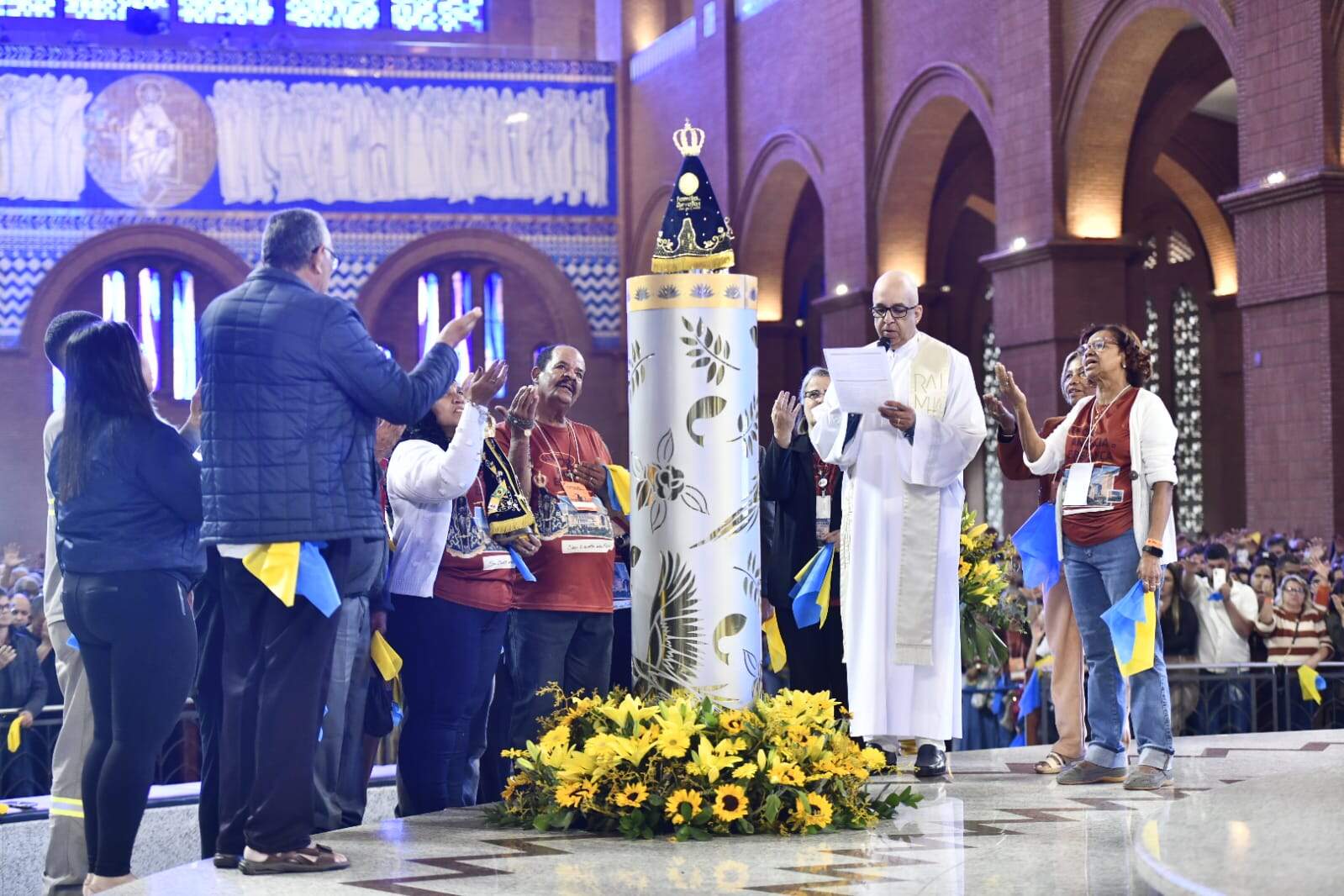“Aqui em Aparecida, Nossa Senhora continua fazendo a mesma coisa. Desde 1717, quando sua imagem foi encontrada no Rio Paraíba pelos três pescadores, Nossa Senhora continua percebendo o que está faltando na vida do povo brasileiro, dos filhos e filhas de Deus. E ele continua intercedendo. Aqui em Aparecida, é como se fosse uma continuação das Bodas de Caná, como se ela continuasse acontecendo, e Nossa Senhora continuasse percebendo as necessidades de cada filho”, refletiu o ecônomo durante a homilia.