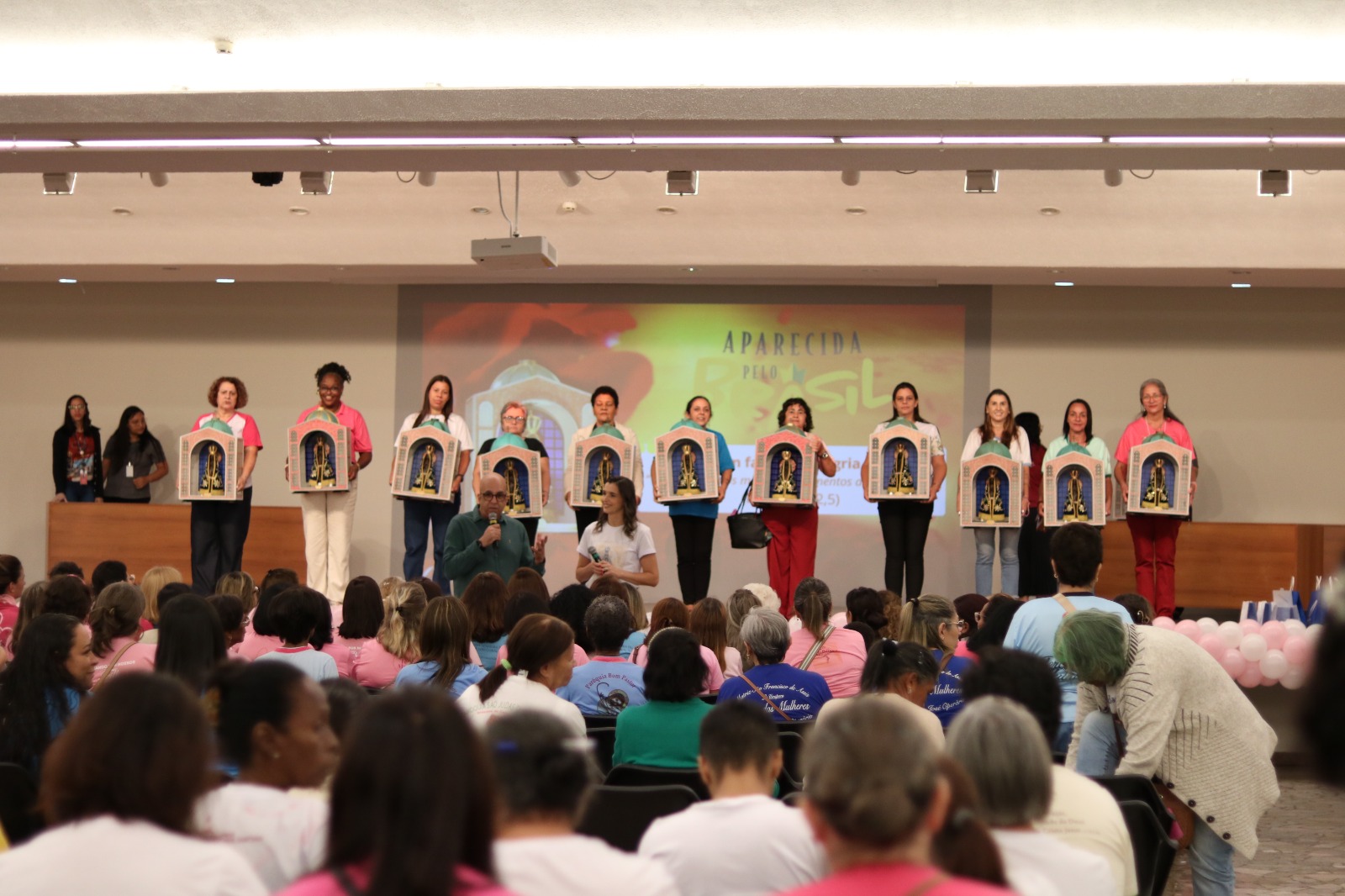 Ao longo do Encontro, houve sorteios e brindes para as coordenadoras. Ao fim, Pe. Fábio deu uma bênção especial às mulheres presentes no Auditório, encerrando com muita oração e harmonia.