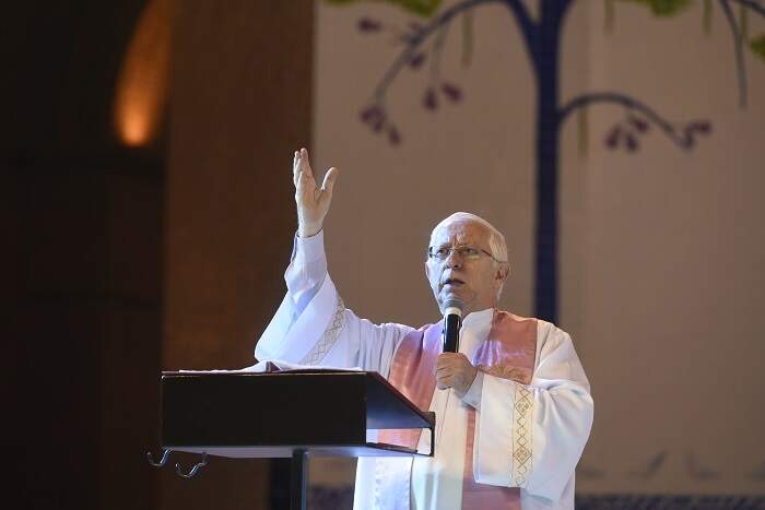 “Praticamente na véspera de completar dois anos de padre vim trabalhar na Paróquia de Aparecida. Naquele tempo, a cidade toda era uma Paróquia só”, rememora padre Frasson, que chegou em 1975 ao município e desde então exerce seu ministério na “Terra da Padroeira”.