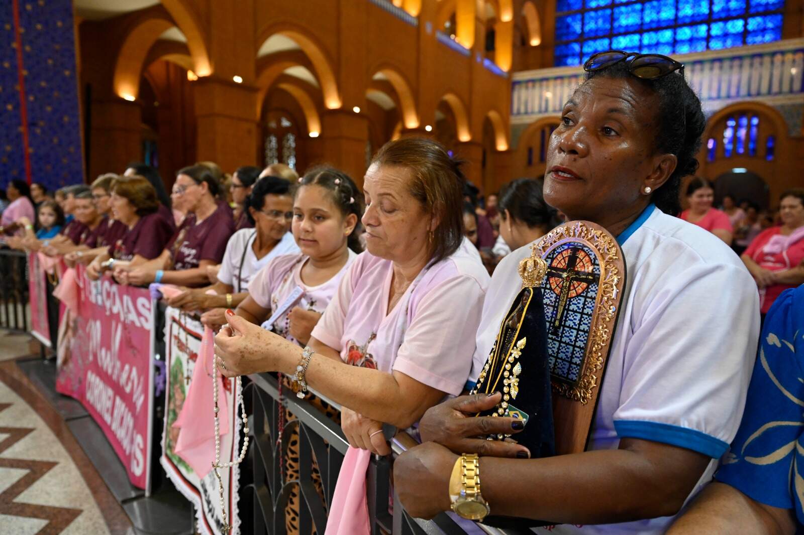 O Santuário Nacional, neste mês especial das mulheres, acolhe fiéis vindas de diversas cidades do Brasil, para participar da Romaria Nacional do Terço das Mulheres.
