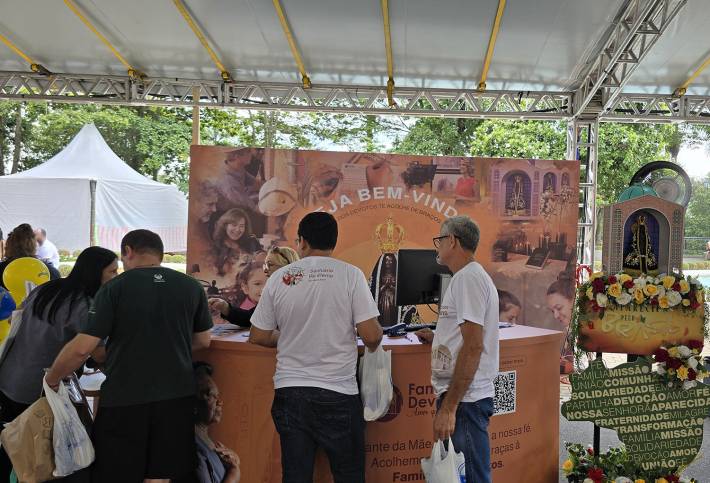 A Tenda da Família dos Devotos seguirá em funcionamento também no domingo, das 9h às 13h, acolhendo todos aqueles que desejam fazer uma pausa, rezar, conhecer mais sobre a missão da Família dos Devotos e sentir-se ainda mais próximos da Mãe Aparecida.