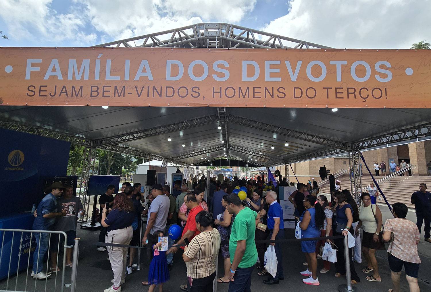A Família dos Devotos preparou um espaço especial para acolher, com carinho e alegria, os milhares de peregrinos que participam da 18ª Romaria do Terço dos Homens, a maior romaria da Casa da Mãe Aparecida. Durante este fim de semana, a Tenda da Família dos Devotos se torna um verdadeiro ponto de encontro para oração, partilha e troca de experiências