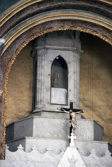 Inicialmente a capela era muito simples, coberta com as folhas de palmeiras, com o altar móvel, o crucifixo e a imagem de Nossa Senhora trazidos do Portugal.
