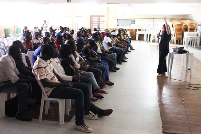 Haitianos passam por palestram intercultural antes