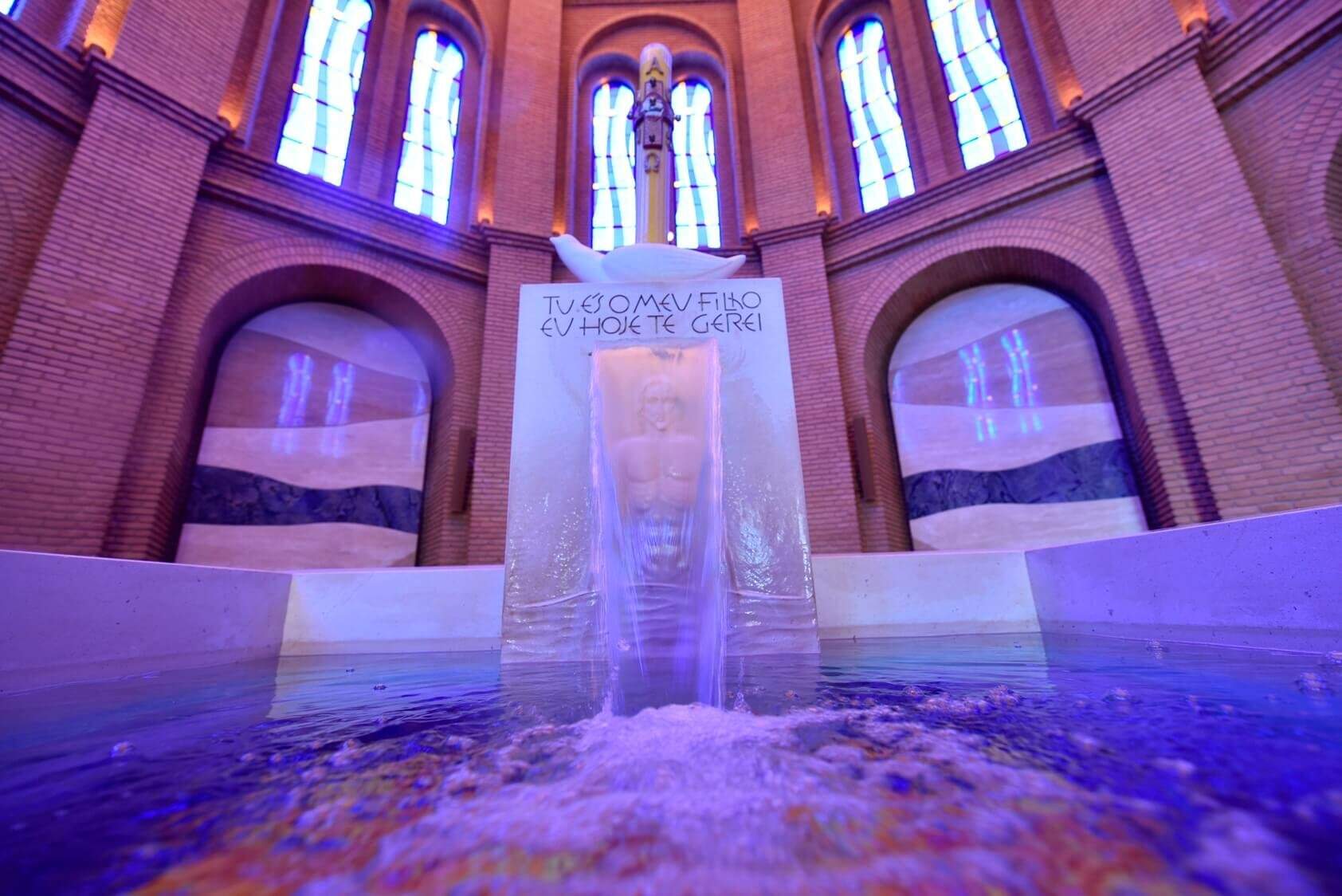 No Evangelho, a voz da nuvem exclama “Este é o meu Filho, o Escolhido. Escutai o que Ele diz!” (Lc 9,35). Com este mesmo significado, a Capela do Batismo no Santuário de Aparecida faz uma profunda catequese, ao lembrar para nós a filiação realizada — e proposta como caminho — no nosso batismo.