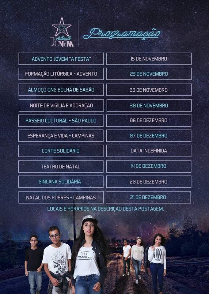 Para conferir a programação completa clique aqui, ou acesse a página do facebook do Advento Jovem aqui.