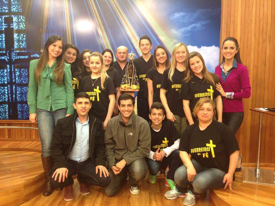 “Guerreiros da Fé” é o nome do grupo de jovens da pequena cidade de Sagrada Família (RS) que enfrentou cerca de 22 horas de viagem para visitar o Santuário Nacional de Aparecida e participar do Bem-vindo Romeiro na última terça-feira, 29. O programa apresentado pelo pe. Evaldo César de Souza aproveitou para celebrar 1 ano de JMJ Rio2013 e contou com a participação dos apresentadores do Jovens de Maria.