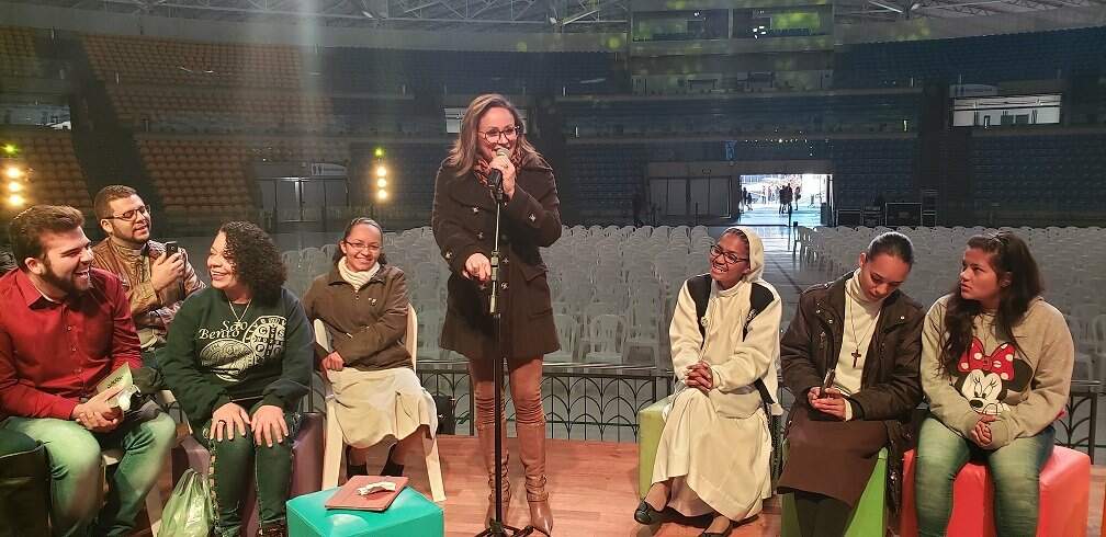 A cantora Ziza Fernandes esteve reunida com a juventude na manhã deste domingo e fez a reflexão? O seu sorriso, a sua disponibilidade está a serviço do próximo?