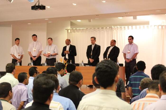 No Auditório Padre Noé Sotillo, no subsolo do Santuário Nacional, a mesa de abertura do encontro foi formada pelo presidente da Comissão Episcopal Pastoral para os Ministérios Ordenados e a Vida Consagrada, Dom Pedro Brito Guimarães, padre Domingos Barbosa, presidente da Organização dos Seminários e Institutos Filosófico-Teológicos do Brasil, e pelos demais integrantes da Comissão, dom Waldemar Passini, dom Jaime Spengler, padre Valdecir Ferreira, e por um formador e formando.