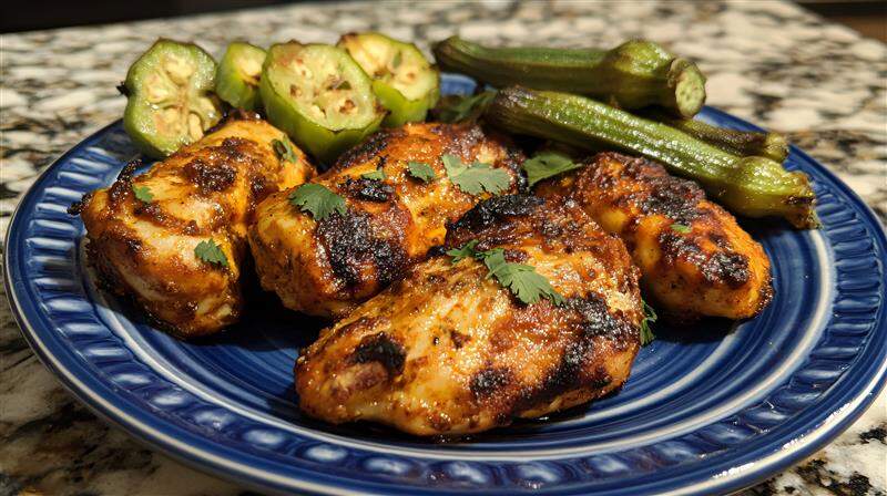 O prato principal fica por conta do clássico brasileiro Frango com Quiabo. Frango douradinho e suculento, quiabo no ponto certo (sem baba) e um refogado que vai dar água na boca.