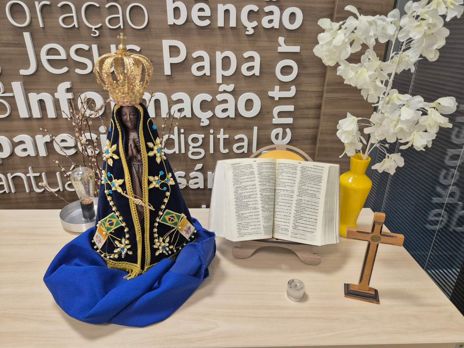 Preparar um altar ou um cantinho de oração para Nossa Senhora Aparecida é essencial para este momento. Escolha um local visível e capriche na decoração para que todos se sintam acolhidos.
