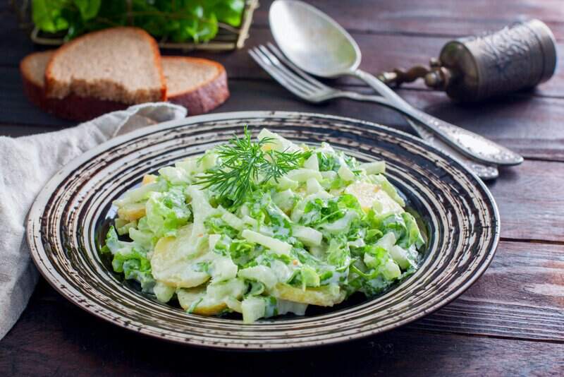 Misture os ingredientes do molho e reserve, numa travessa disponha as folhas de alface, os ingredientes da salada misturados e cubra com o molho.