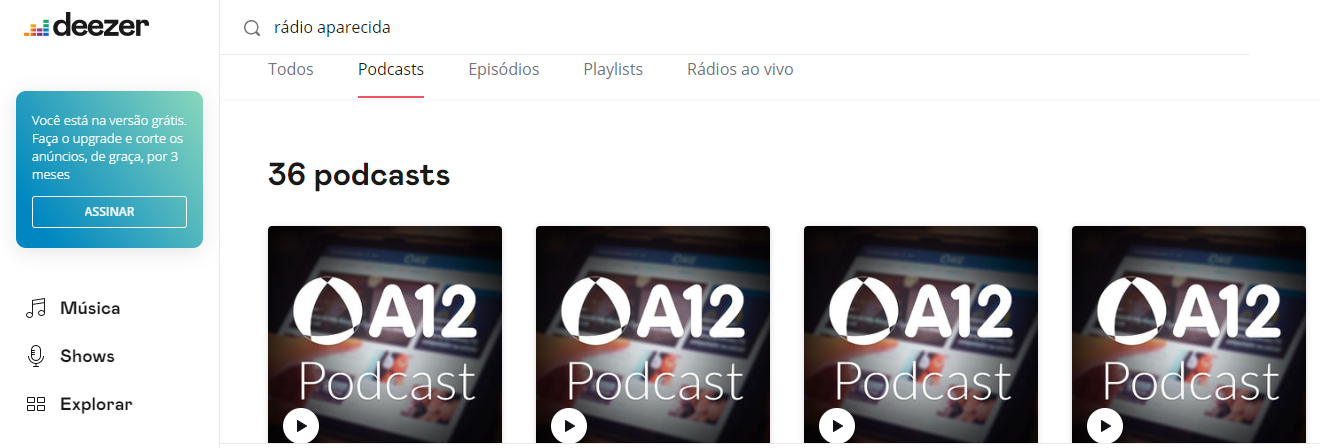 Na área de busca, digite Rádio Aparecida e procure pela aba “Podcasts”!