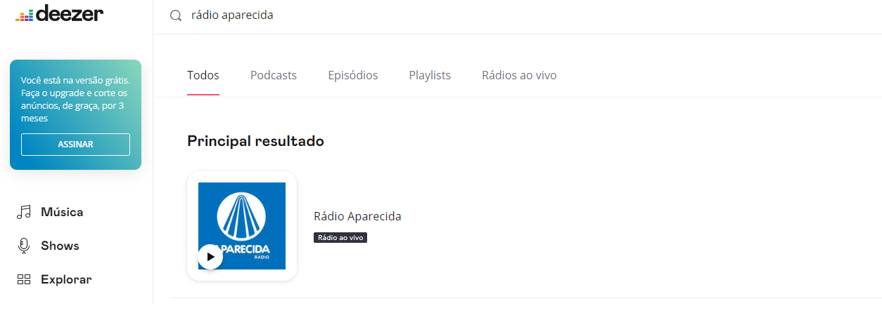 A Rádio Aparecida também pode ser acompanhada ao vivo pelo Deezer!