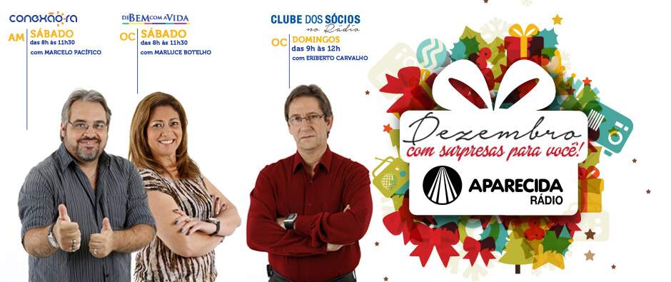 A partir do dia 5 de dezembro, os ouvintes terão uma nova programação para o final de semana. São três novos programas nas Ondas Médias e Curtas; um presente de Natal para todos aqueles que acompanham diariamente a Rádio Aparecida.