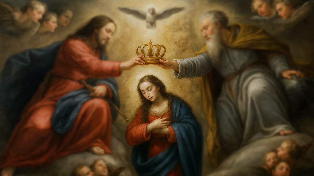 Não se trata de um reino deste mundo, mas de um reinado eterno, universal, segundo a vontade de Deus. O reinado de Nossa Senhora se faz visível concretamente, para nós que ainda caminhamos neste mundo, através da intercessão, proteção e orientação concedidas por ela para nos conduzir ao seu Filho.
