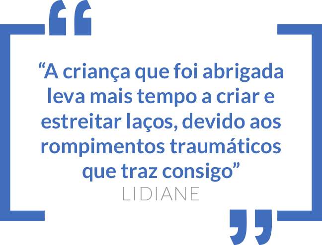 Para Lidiane com o passar do tempo a criança precisa compreender o seu novo estilo de vida, precisa ter suas percepções sobre o ambiente em que está sendo inserida e muitas vezes o único sentimento que possuem nesse processo de adaptação é insegurança, ansiedade e expectativas se serão aceitas nessa constelação familiar. “A criança precisa sentir-se protegida, segura, aceita e amada. Gestos de carinho e compreensão amenizam a carência e insegurança. O diálogo e a atenção desperta a empatia e são fundamentais para que vínculos sejam criados e mantidos, todos esses fatores são direcionados para o desenvolvimento da confiança no seio familiar”, exemplifica.