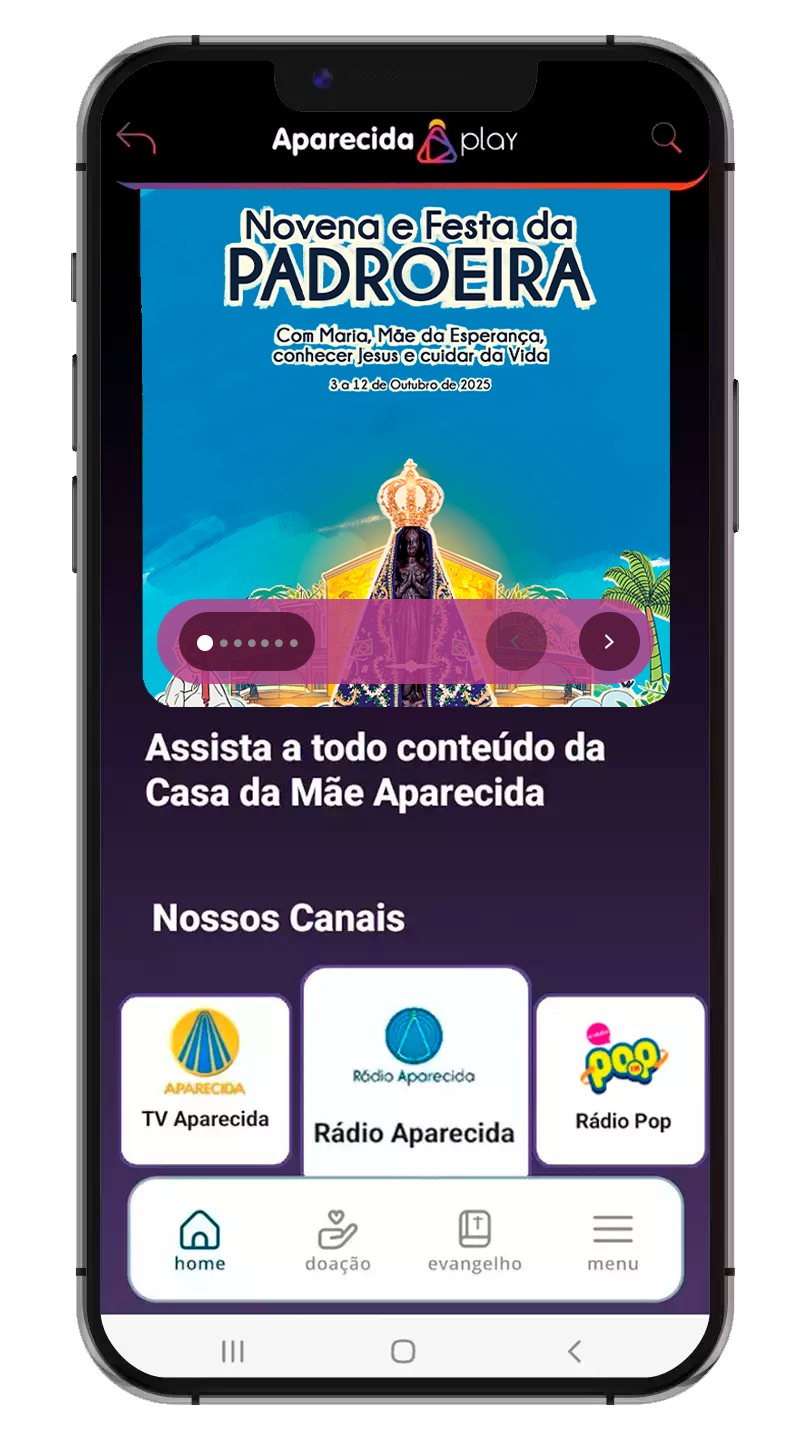 É com a sua doação que o Santuário Nacional consegue levar uma mensagem de amor, fé e esperança a todas as pessoas por meio do Aplicativo Aparecida.